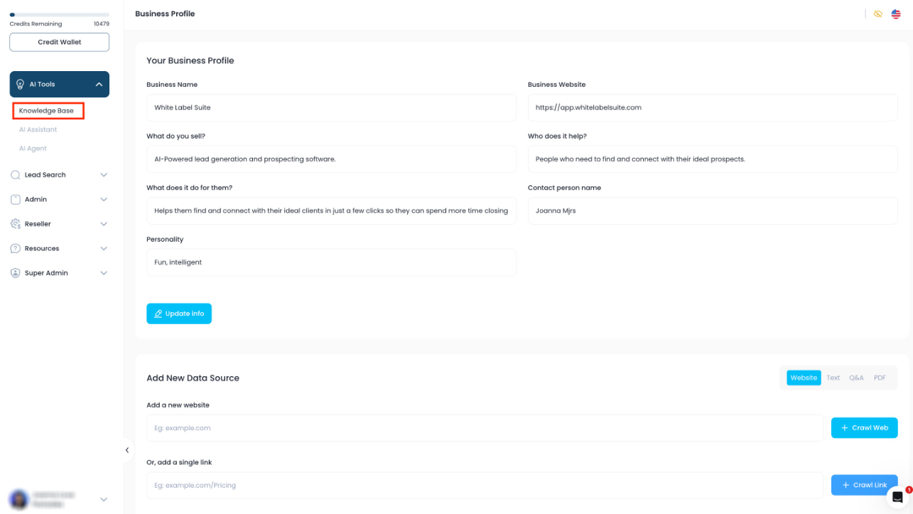 Note: Access to the Knowledgebase depends on your plan. Some plans do not include the AI Tools, and an upgrade may be needed to use this feature.