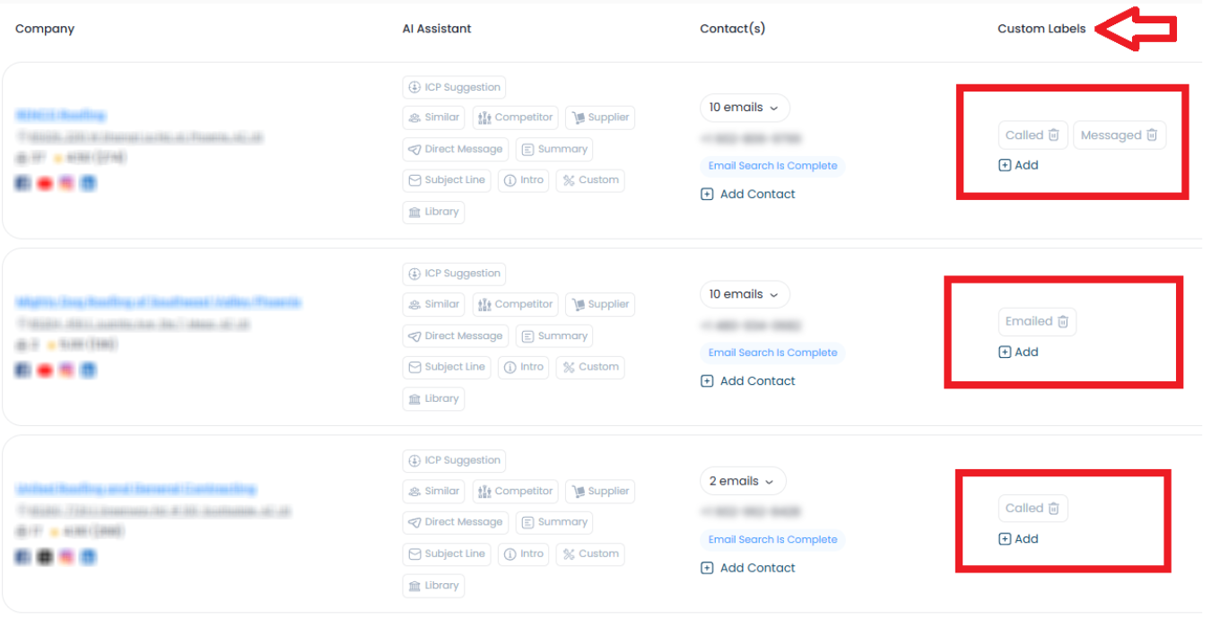Custom Labels help you stay organized inside the Lead Generation Tool platform.